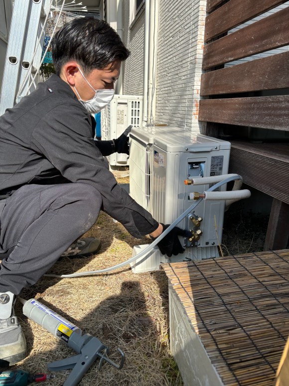 弊社ではお客様に安心、安全、低コストのエアコン工事をご提供させていただくために、中間業者を入れず、完全自社施工しております。
