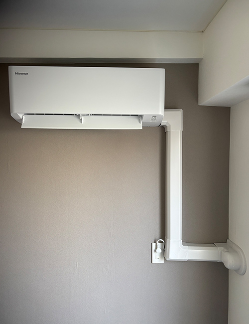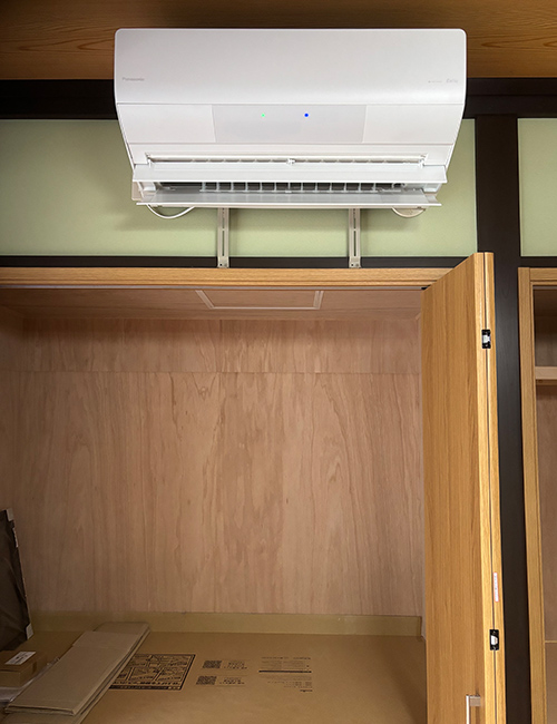 室内機の取り付け面が土壁のため、タテサンを使用しています。